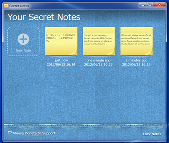 Secret Notesは付箋感覚でメモを作成・保存でき、他の人に見られないようパスワードで管理できる無料ソフトです。